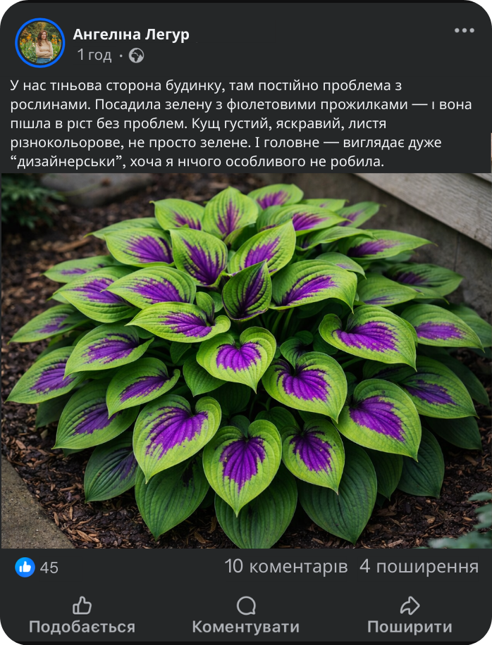 Хоста — це рослина, яка не потребує складного догляду. Вона добре росте у тіні та півтіні, не боїться прохолоди й підходить навіть тим, хто не має великого досвіду в садівництві. Достатньо підтримувати ґрунт злегка вологим і час від часу підживлювати рослину — цього цілком достатньо для гарного росту та пишного листя.